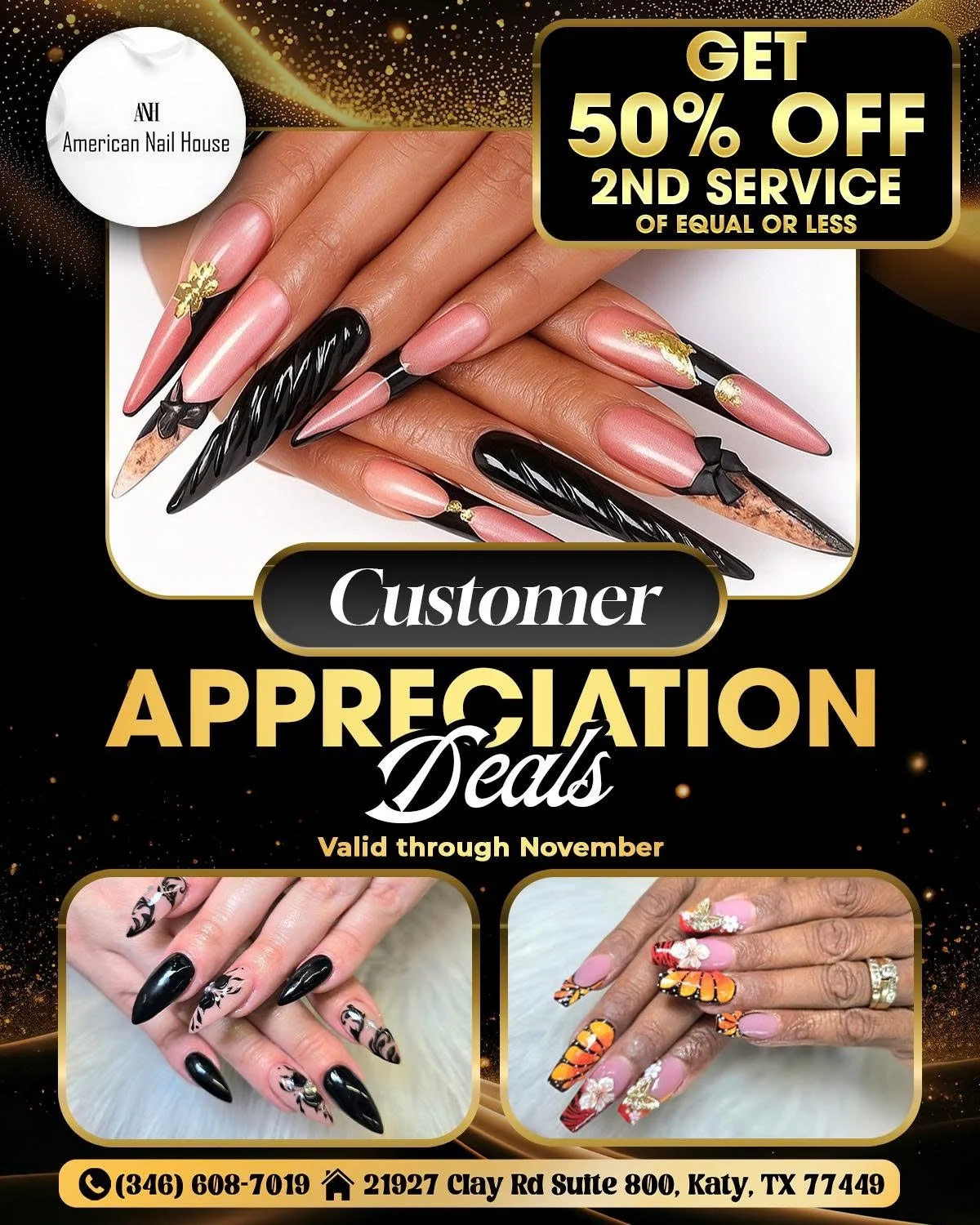Excellent service and they offer new techniques for healthier nail growth! Nitha is amazing! She will definitely do whatever design you ask for and Tina was amazing as well.